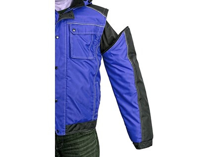 Pánská zateplená bunda 2 v 1, zapínaní na zip krytý légou, odepínací kapuce, fleecový límec, odepínací rukávy, regulovatelné manžety na rukávech, plastové poutko pod pravou náprsní kapsou, stahování v dolním okraji, lepené švy, reflexní doplňky. Kapsy: 4 náprsní kapsy (2 na zip), 2 spodní kapsy na zip, 2 vnitřní kapsy.