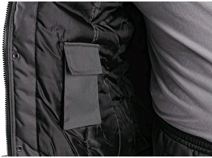 Pánská zateplená bunda 2 v 1, zapínaní na zip krytý légou, odepínací kapuce, fleecový límec, odepínací rukávy, regulovatelné manžety na rukávech, plastové poutko pod pravou náprsní kapsou, stahování v dolním okraji, lepené švy, reflexní doplňky. Kapsy: 4 náprsní kapsy (2 na zip), 2 spodní kapsy na zip, 2 vnitřní kapsy.