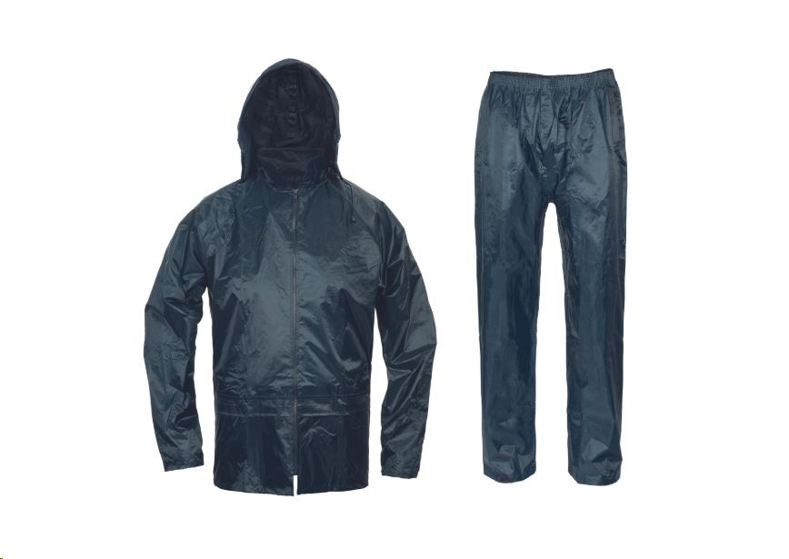 • dvoudílný voděodolný oblek s kapucí • ¾ plášť s integrovanou kapucí v límci a kalhoty v pase do gumy • dvě přední široké kapsy kryté légami proti průniku vody • spodní část rukávů lze regulovat drukem • ventilace na zádech a v podpaží • transportní obal