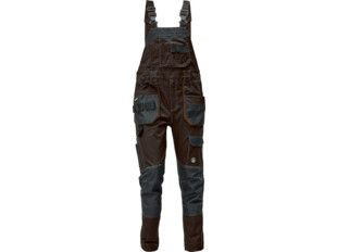 pánské pracovní kalhoty s laclem, elastický inovativní materiál TRIFIBETEX®, ergonomický střih, pružný pas, odolné trojité prošití nohavic a sedu, zesílená oblast kolen s možností vkládání kolenních výztuh, prostorné multifunkční přední kapsy s poutky na nářadí, 2 zadní kapsy s klopou zesílené Oxfordem, stehenní kapsa na telefon s klopou a zapínáním na suchý zip, kapsa na metr a nůž, poutko na kladivo, "D" kroužek, poutko na nářadí v pase, originální zpracování zapínání kalhot, reflektivní prvky v barevném odstínu, nastavitelná délka nohavic