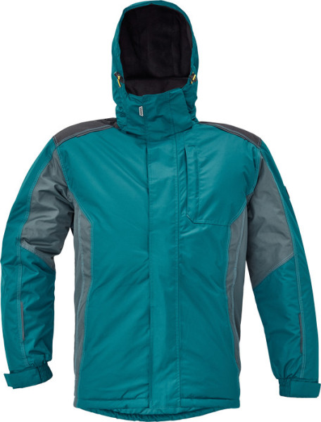 pánská zimní bunda s odepínací kapucí, prodloužený zadní díl, 1 náprsní kapsa na zip, 2 boční kapsy na zip, 2 vnitřní kapsy na zip, hlavní zip krytý légou se zapínáním na suchý zip, stahovací šňůrka v kapuci a spodním obvodu, fleece v límci a kapuci, nastavitelná šíře rukávů suchým zipem, možnost strojního vyšívání, reflektivní prvky v barevném odstínu