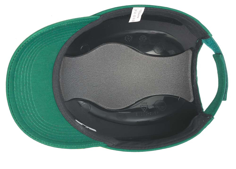 Bavlněná čepice s pevným kšiltem, plastovou vnitřní výztuhou a možností nastavení velikosti pomocí suchého zipu, odpovídá normě EN 812.