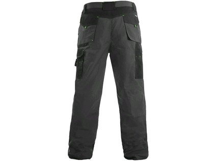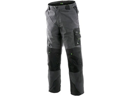 Pánské montérkové kalhoty, pas s poutky na opasek a gumou v bocích, přední klínové kapsy, multifunkční kapsy na obou stranách, kolena zesílena materiálem 600D polyesterem s možností vložení kolenních výztuh, dvě zadní kapsy s klopami, reflexní doplňky. Doporučené použití: stavebnictví, strojírenství, lehký průmysl, práce na silnici, odtahové služby, automobilový průmysl, logistika, skladová manipulace, spedice, autoservisy, údržba, montáže, zemědělství, zahrada, hobby.