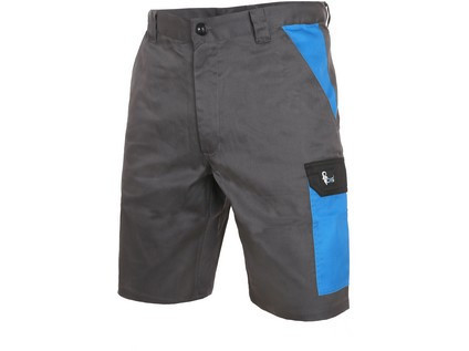 Pánské montérkové kraťasy z lehkého materiálu, pas s poutky na opasek a gumou v bocích, přední klínové kapsy, boční kapsa s klopou, kapsa na skládací/svinovací metr, zadní jednoduchá kapsa na pravé straně, reflexní doplňky. Doporučené použití: letní pracovní oděv, stavebnictví, strojírenství, lehký průmysl, automobilový průmysl, logistika, skladová manipulace, spedice, autoservisy, údržba, montáže, zemědělství, učiliště, zahrada, hobby.