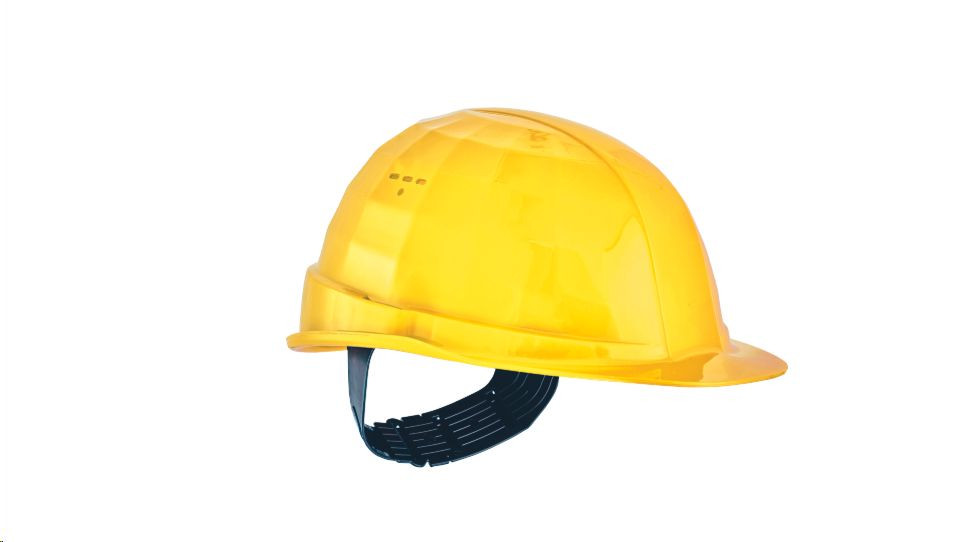 ventilovaná průmyslová přilba; 4 bodový textilní náhlavní kříž; nastavení velikosti pomocí posuvného pásku; materiál polyethylen; hmotnost 310 g
