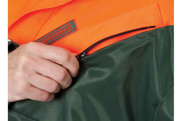 • pánský set protipořezové bundy a klahot s laclem určený pro práci v lese • krátký límec s fleecem z vnitřní strany • na levé straně náprsní kapsa na zip • na pravé straně kapsa na mobil s klopou na suchý zip • kapsa na rukávu • zapínání na zip s klopou na druky • rukávy s vnitřní pružnou manžetou • prodloužená zadní část • odvětrání na zádech • povrchová úprava proti klíšťatům • certifikace na ochranu proti pořezu motorovou pilou Class 1 - rychlost řetězu 20 m/s.