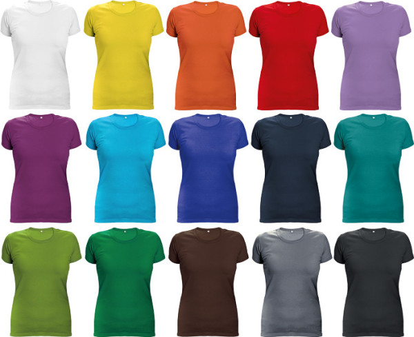 Dámské triko s krátkým rukávem. Díky přidanému elastanu drží tvar a střih zvýrazňuje dámskou postavu. Zpevňující ramenní páska. Prodloužená délka. Díky přidanému elastanu drží tvar. Vhodné pro potisk a výšivku, 170 g/m2.