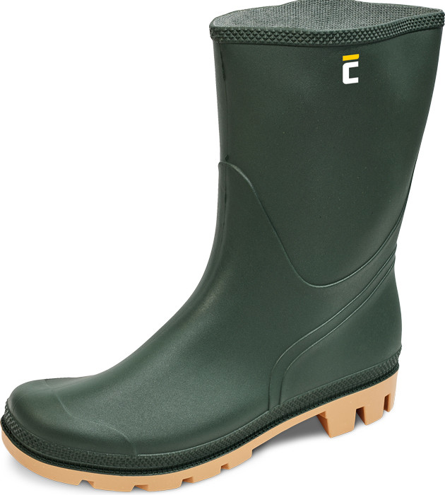 Nízké holínky z PVC a nitrilu odolné proti působení rostlinných a živočišných tuků s podešví s hlubokým dezénem. Výška: 28 cm.