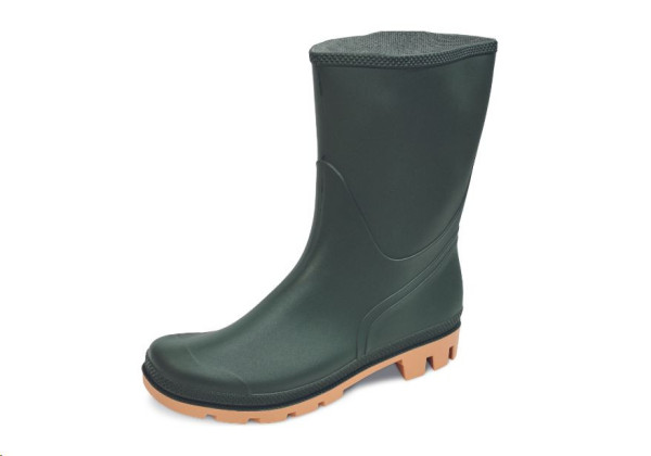 Nízké holínky z PVC a nitrilu odolné proti působení rostlinných a živočišných tuků s podešví s hlubokým dezénem. Výška: 28 cm.