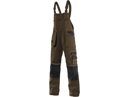 Pánské montérkové kalhoty s náprsenkou, náprsní kapsy s klopami, pas s poutky na opasek, vzadu do gumy, přední kapsy s poutky na nářadí, multifunkční kapsy na obou stranách, kolena zesílena 600D polyesterem s možností vložení kolenních výztuh, dvě zadní kapsy, jedna na suchý zip, šle s gumou vzadu, reflexní doplňky. Doporučené použití: stavebnictví, strojírenství, lehký průmysl, automobilový průmysl, logistika, skladová manipulace, spedice, autoservisy, údržba, montáže, zemědělství, zahrada, hobby.