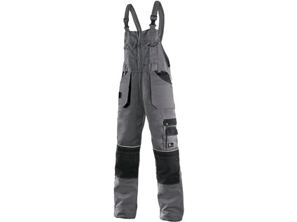 Pánské montérkové kalhoty s náprsenkou, náprsní kapsy s klopami, pas s poutky na opasek, vzadu do gumy, přední kapsy s poutky na nářadí, multifunkční kapsy na obou stranách, kolena zesílena 600D polyesterem s možností vložení kolenních výztuh, dvě zadní kapsy, jedna na suchý zip, šle s gumou vzadu, reflexní doplňky. Doporučené použití: stavebnictví, strojírenství, lehký průmysl, automobilový průmysl, logistika, skladová manipulace, spedice, autoservisy, údržba, montáže, zemědělství, zahrada, hobby.