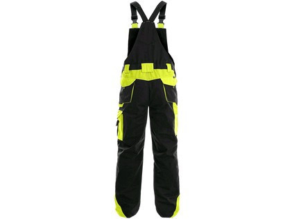 Pánské zahradníky, zesílená kolena s možností vložení kolenních výztuh, pevný pas s poutky na opasek, přední klínové kapsy, zadní kapsy s klopami, boční multifunkční kapsy, náprsenka s kapsou, reflexní doplňky.